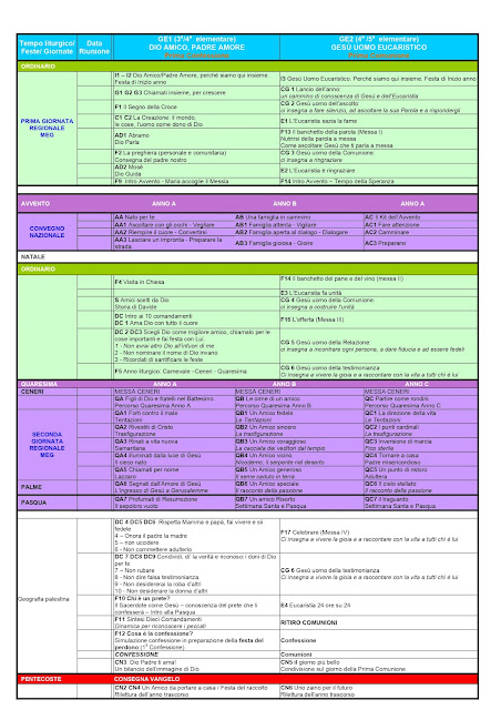 Ho scoperto il sito del MEG (Movimento Eucaristico Giovanile, legato ai padri Gesuiti): propongono un itinerario ben strutturato (e penso anche ben collaudato) per il cammino di catechesi delle comunioni e delle cresime.